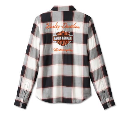 Women Shirt Harley Davidson Classic Logo Plaid Style