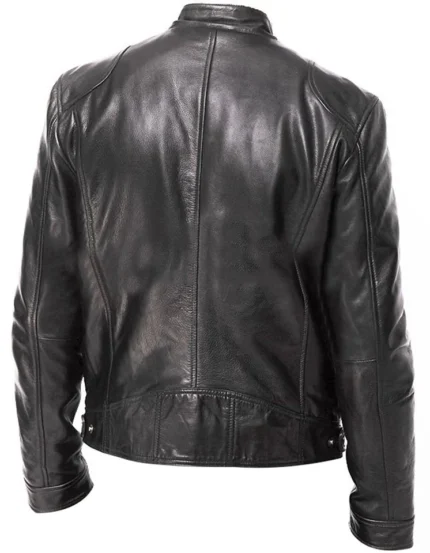 Cafe Racer Biker Leather Jacket Black & Brown Soft Sheep Skin Leather