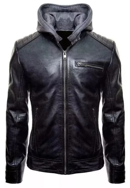 Men’s Harley Davidson Motorcycle Removable Hood Leather Jacket Real Biker Jacket