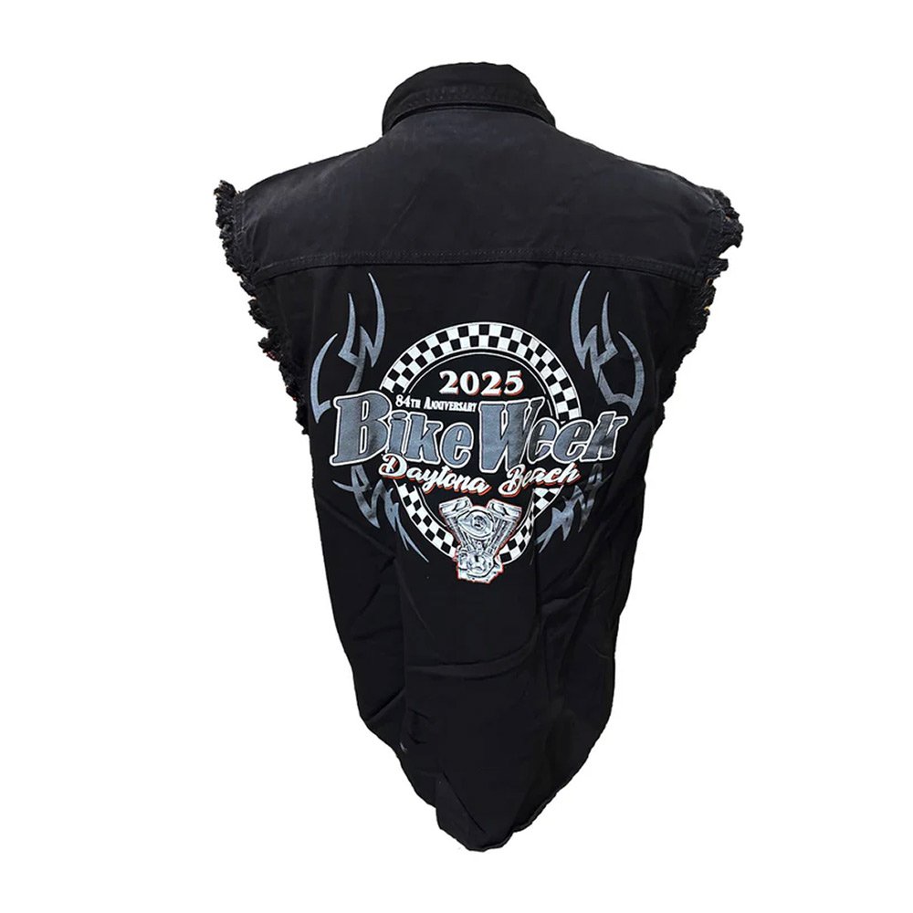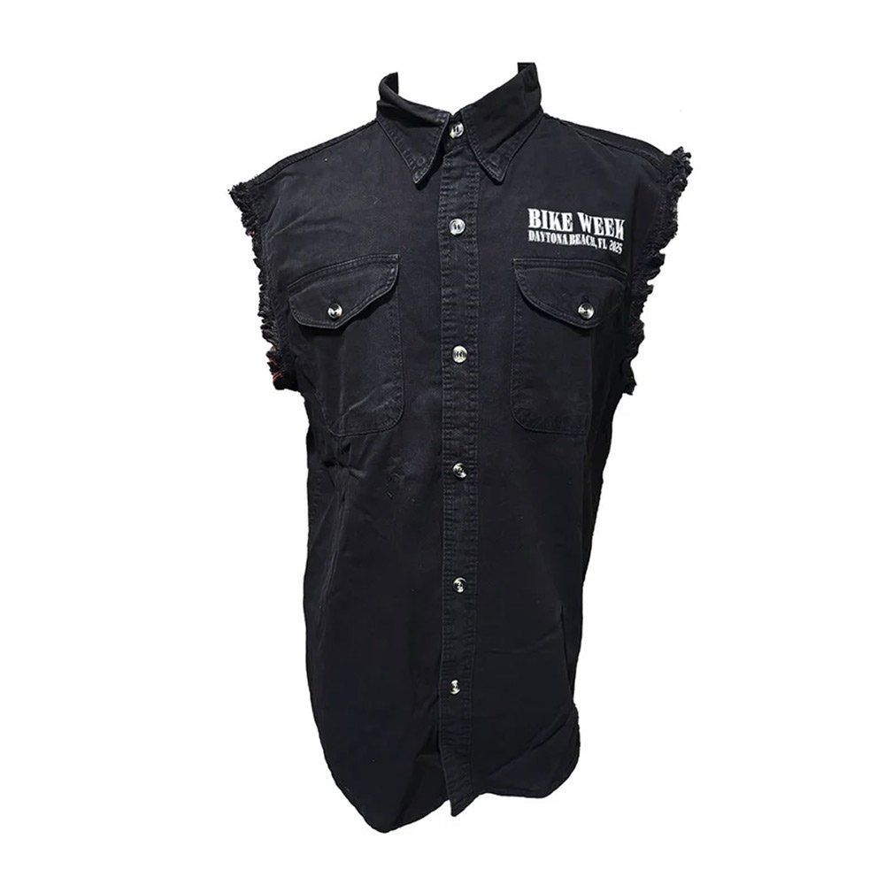 Bike Week 2025 Men’s Official Logo Blow-Out Button-Up Sleeveless Shirt, Black Muscle