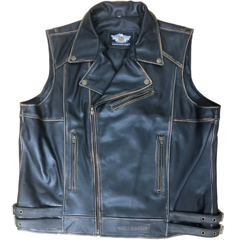 Don’t just ride—ride with swagger. Get your Harley-Davidson distressed leather biker vest now. Customize it with a skull patch. Consequently, you’ll rule the road.