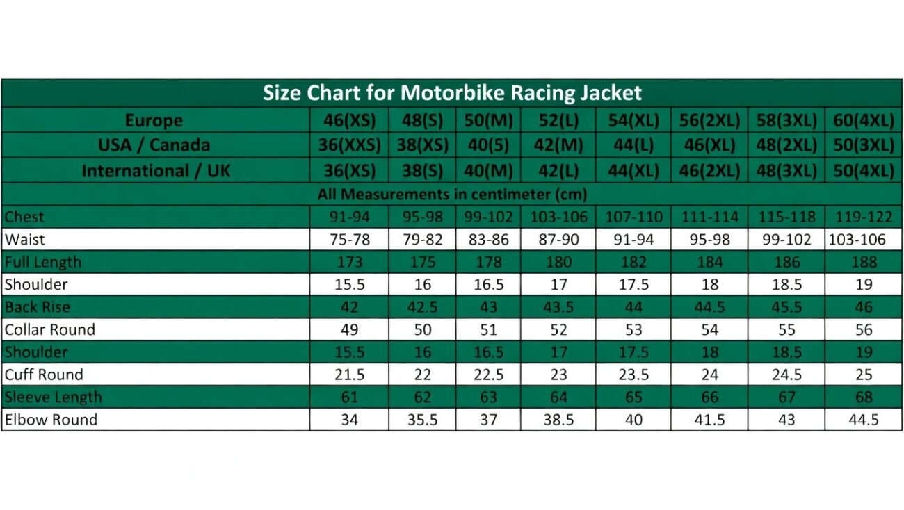size chart for bmw jacket