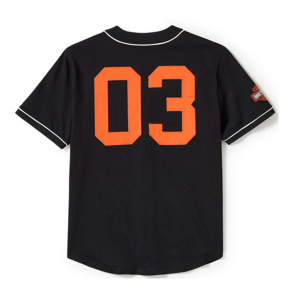 Harley-Davidson Men’s 03′ Scripted Baseball Jersey Button-Up Short Sleeve Shirt, Black 96485-25VM