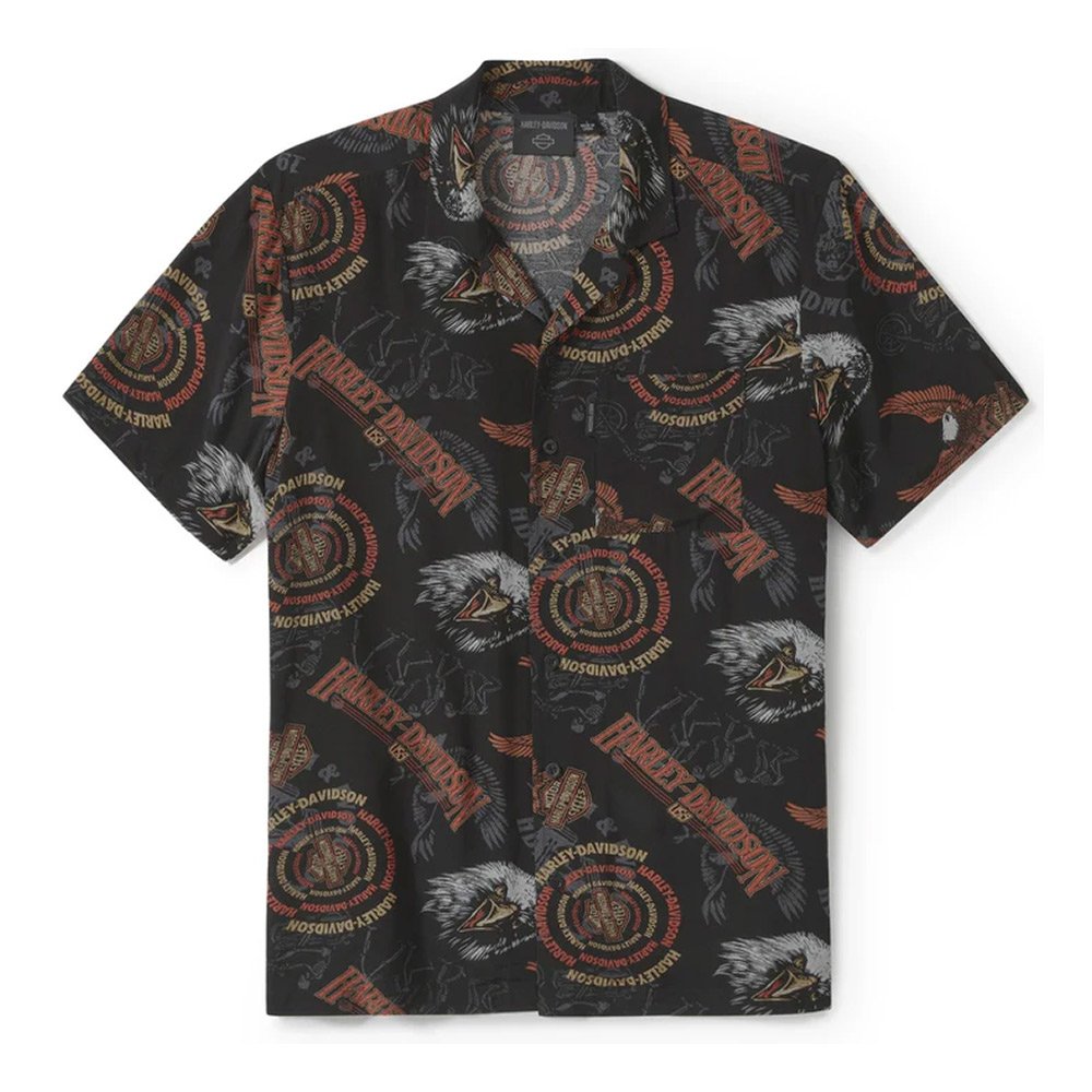 Harley-Davidson Men’s ’80s Aloha Allover Eagle Print Button-Up Short Sleeve Shirt, Black 96509-25VM
