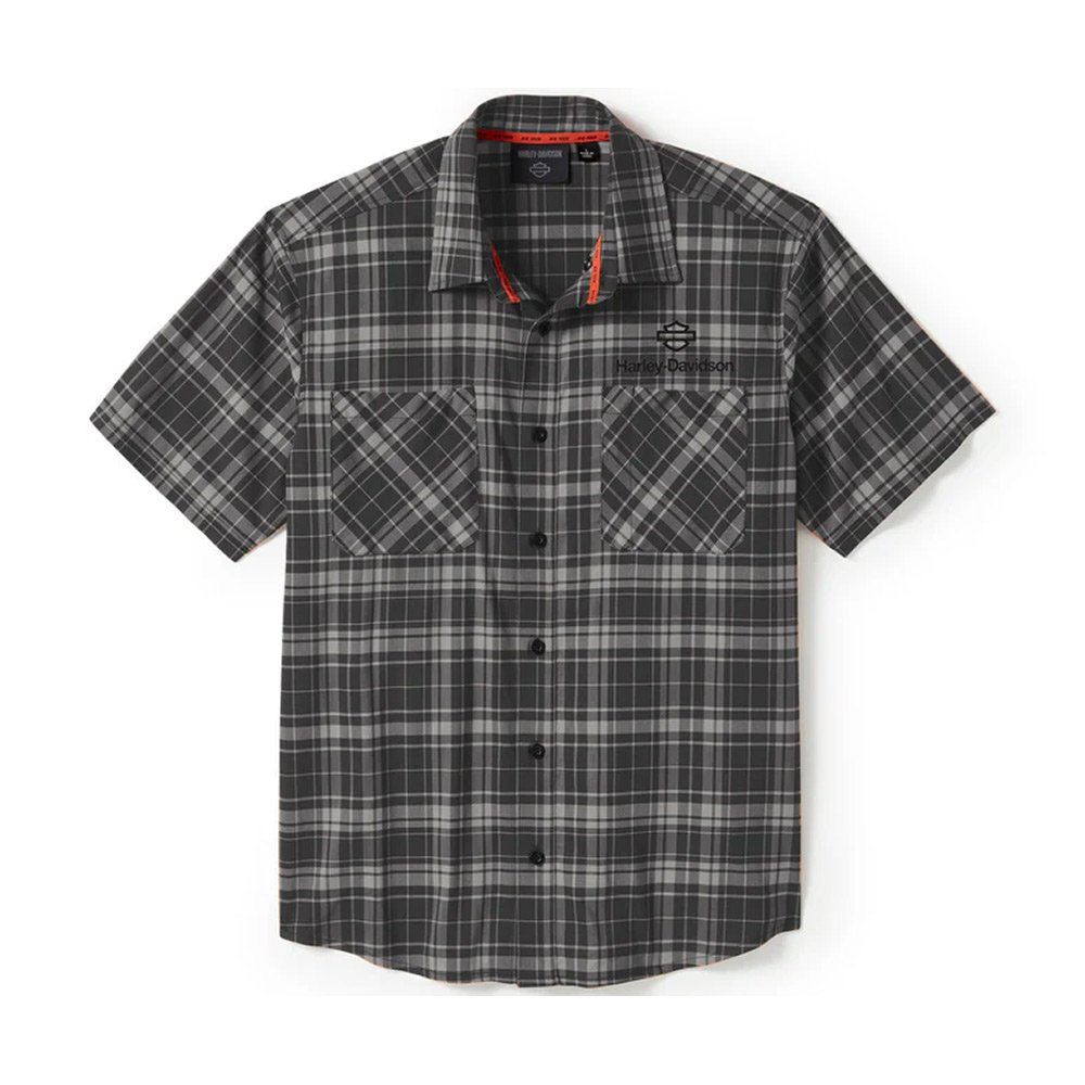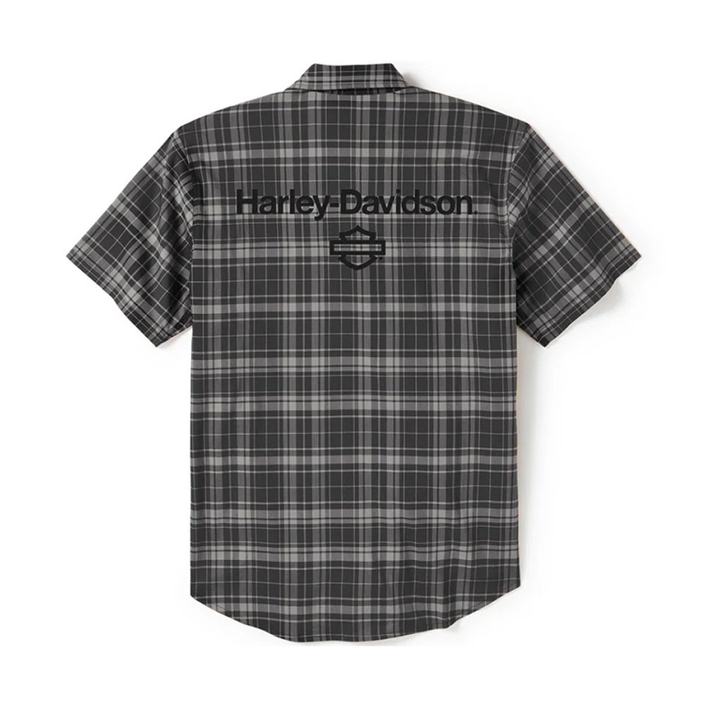 Harley-Davidson Men’s H-D TECH Coolmax Button-Up Short Sleeve Shirt, Gray Plaid 96515-25VM