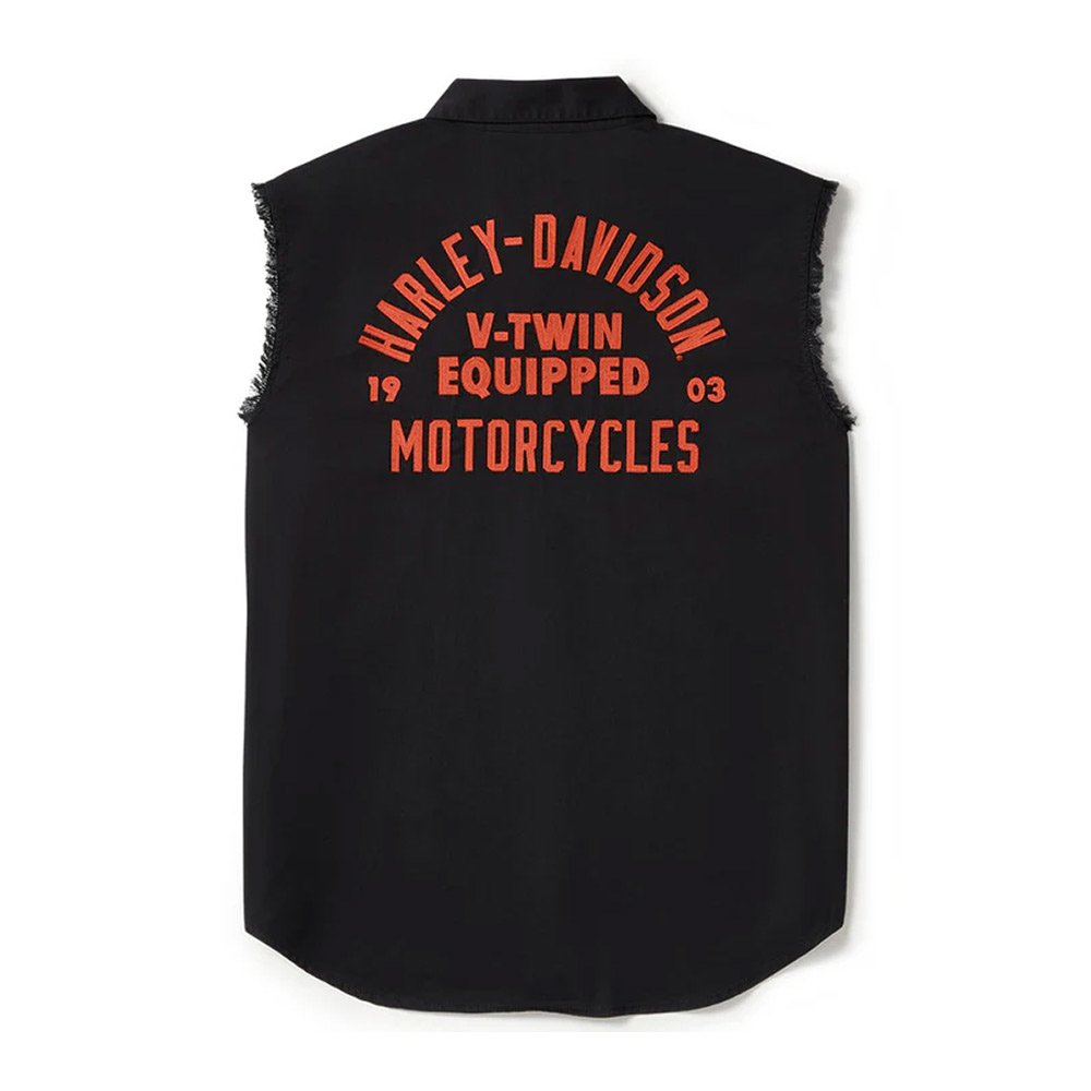 Harley-Davidson Men’s V-Twin Button-Up Equipped Solid Blowout Sleeves Shirt, Black 96496-25VM