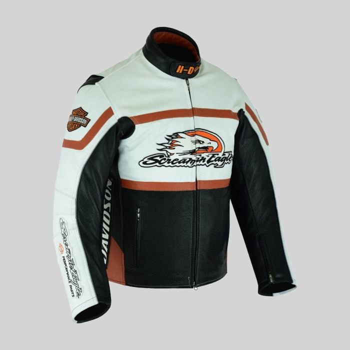 Looking for the top leather jacket for motorcycle riders that combines style, comfort, and protection? The Harley‑Davidson Men’s Raceway Screamin’ Eagle Leather Jacket is engineered for enthusiasts who demand durability and performance. Made from premium cowhide leather with breathable lining, ventilation, and armor-ready pockets, it’s perfect for riders who want both iconic Harley-Davidson style and safety.