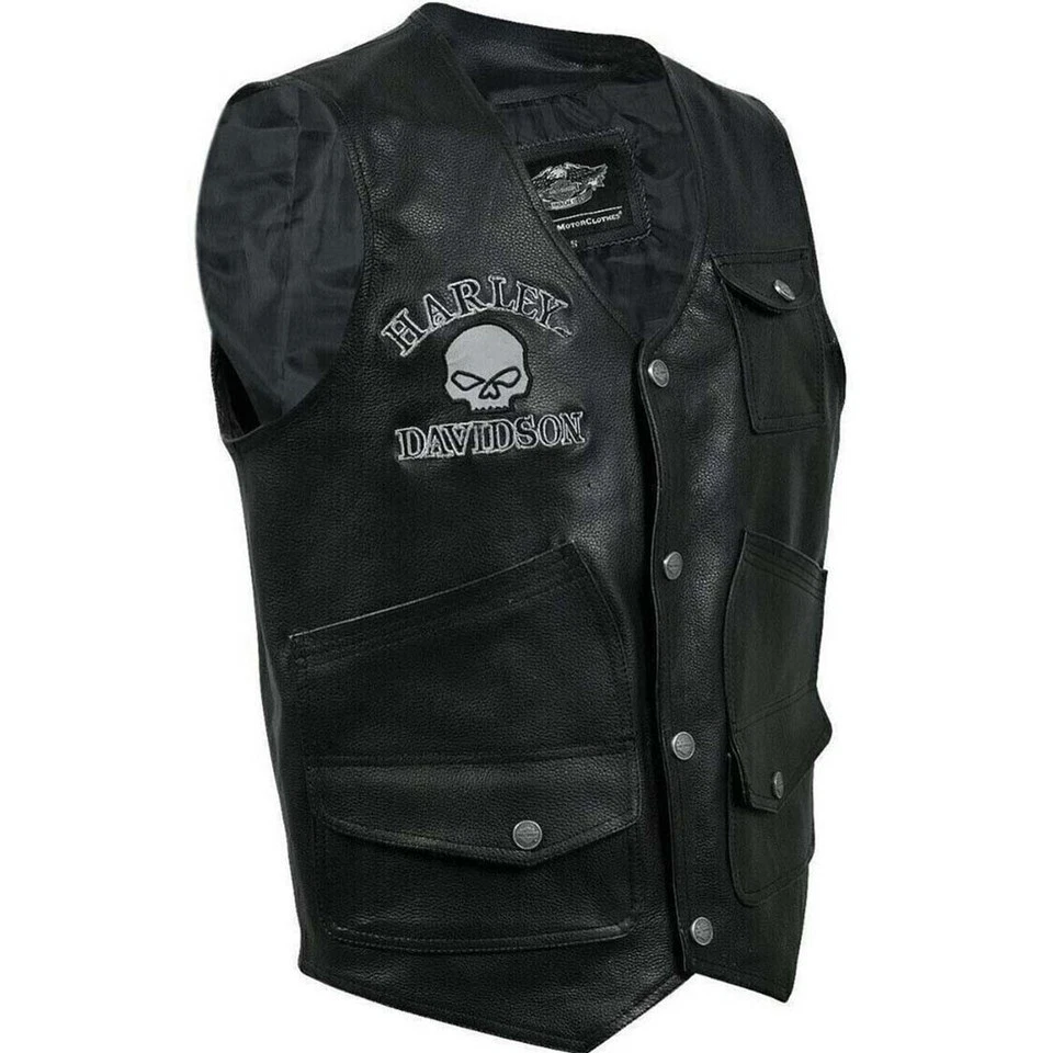 Motorcycle Vest Skull Leather – Harley-Davidson Men’s Genuine Biker Vest