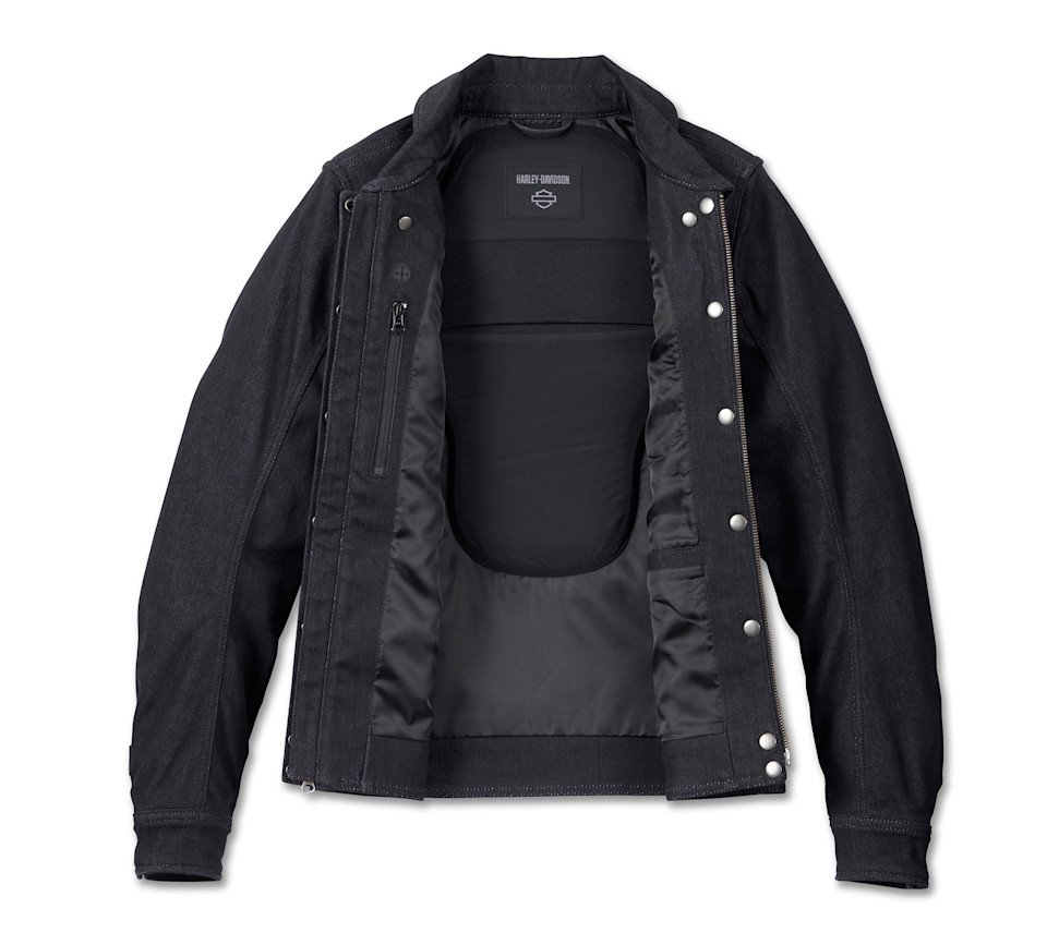 This denim jacket is designed with motorcycle safety in mind. It incorporates armor-ready compartments and abrasion-resistant materials that help reduce risk during rides.