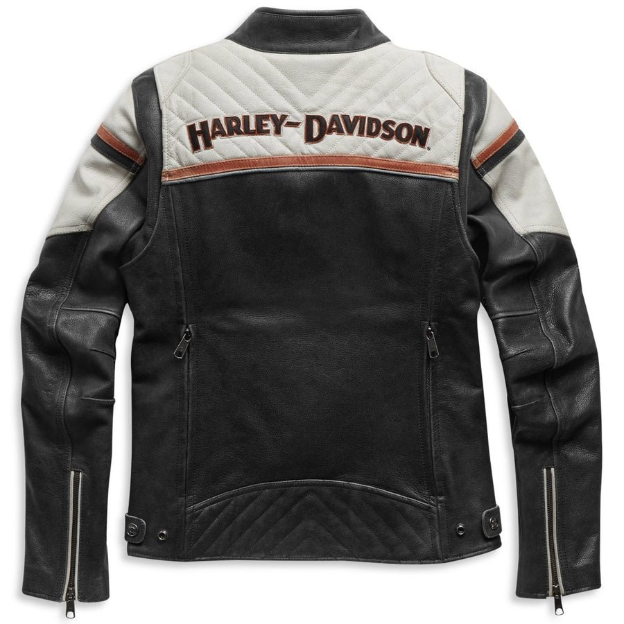 Women’s Triple Vent Jacket – Harley-Davidson Miss Enthusiast II Leather, White/Black/Orange 98008-21VW