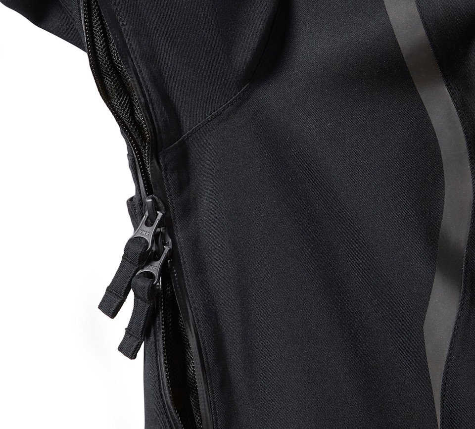 Zippered underarm vents release heat
