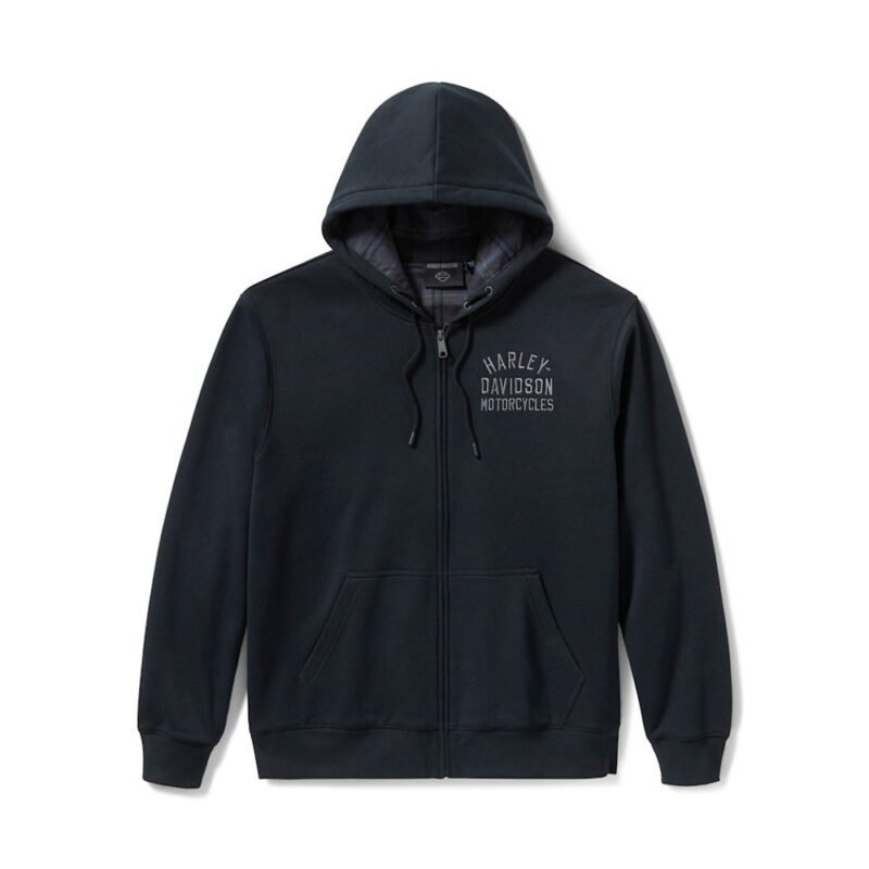 Hoodie with Plaid Lining by Harley-Davidson® | Men’s Zip Hoodie Black/Brown
